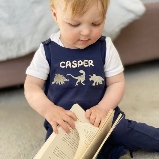 Personalised Embroidered Baby Dinosaur Dungarees