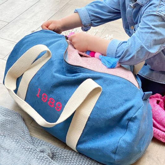 Personalised Year Denim Duffel Bag