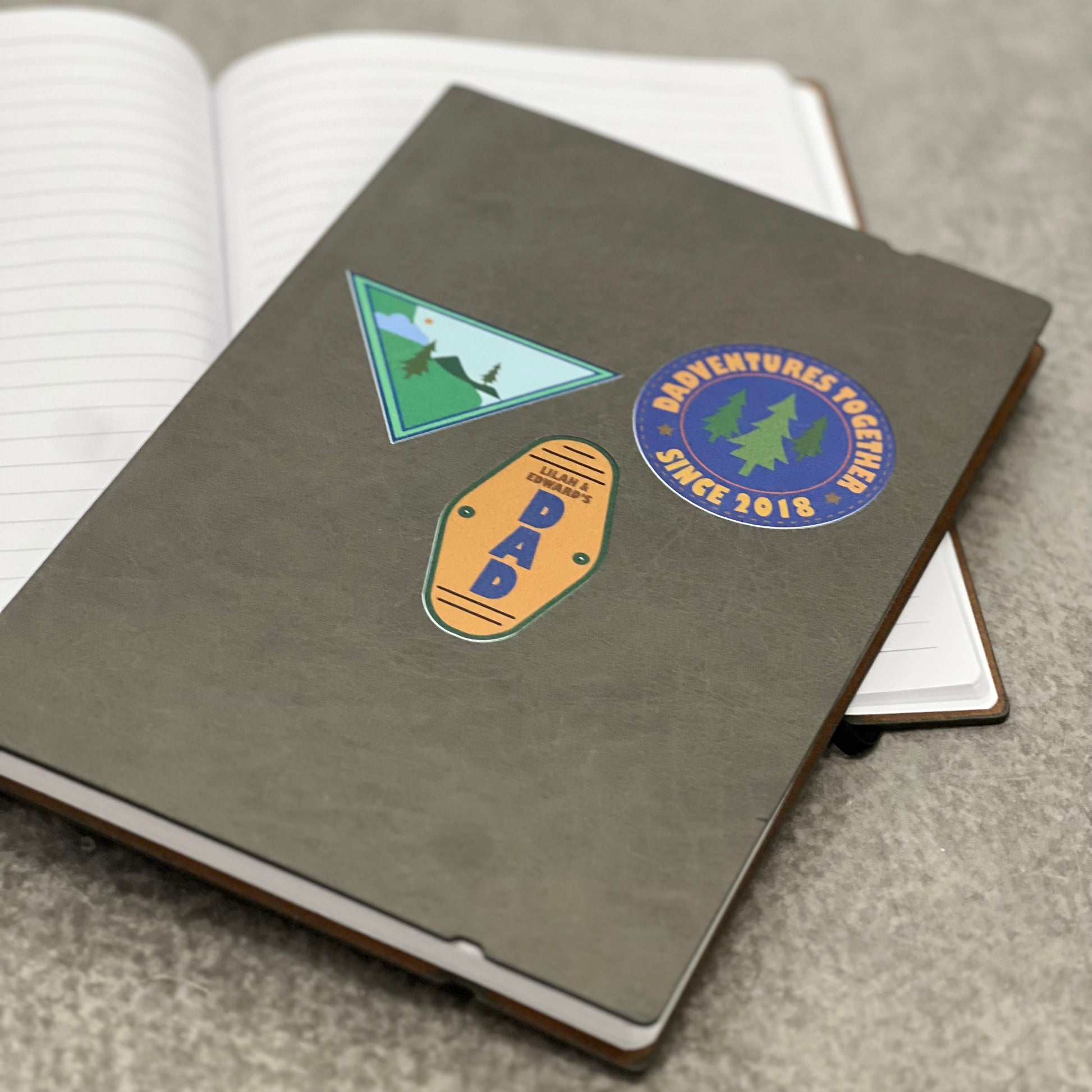 Featuring lined pages, an elastic closure, and a ribbon to mark your page, this adventure badge-design notebook will take your Dad back to his boy scout days with its retro design and colors. You can personalise the text on the notebook and choose from a variety of badges to perfectly represent that special someone.