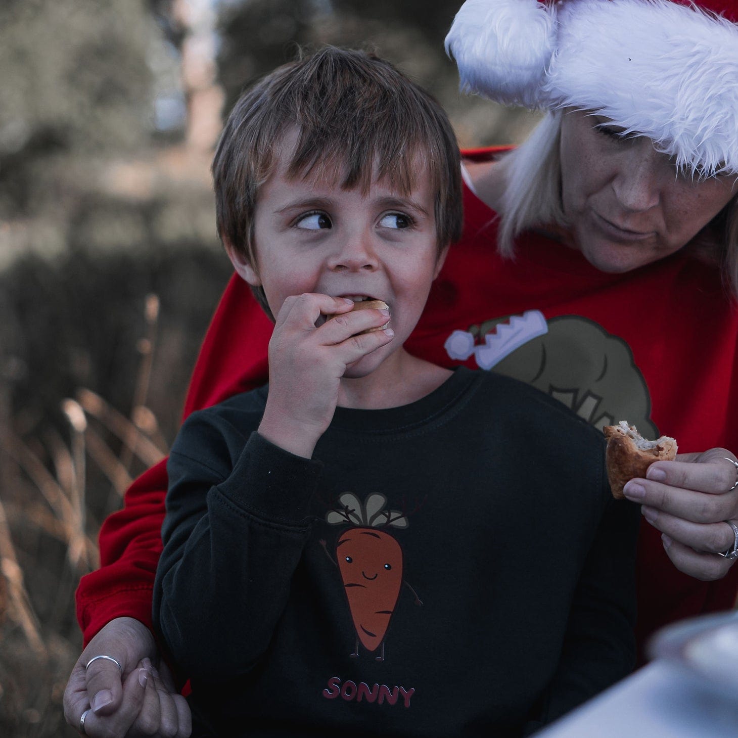 Twin with the whole family with these fun Christmas Dinner themed personalised matching Christmas jumpers.