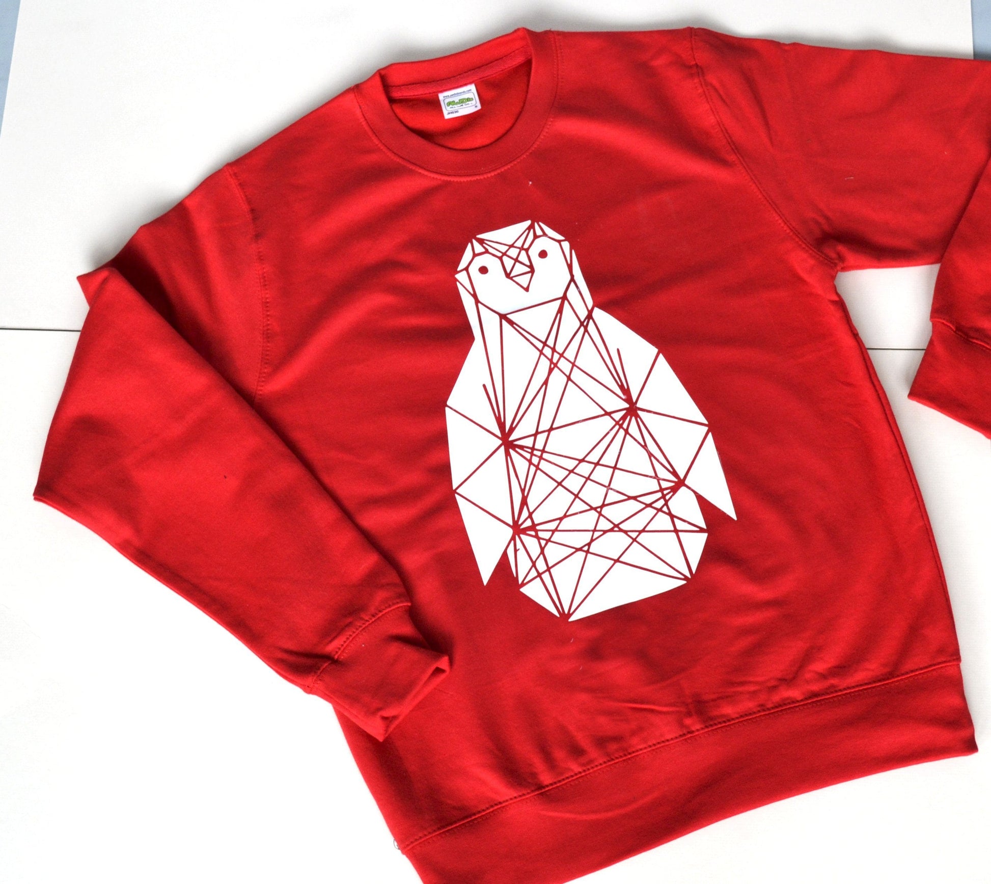 An awesome Christmas Jumper with a super stylish, modern geometric penguin design on the front and an option to add a personalised message inside.