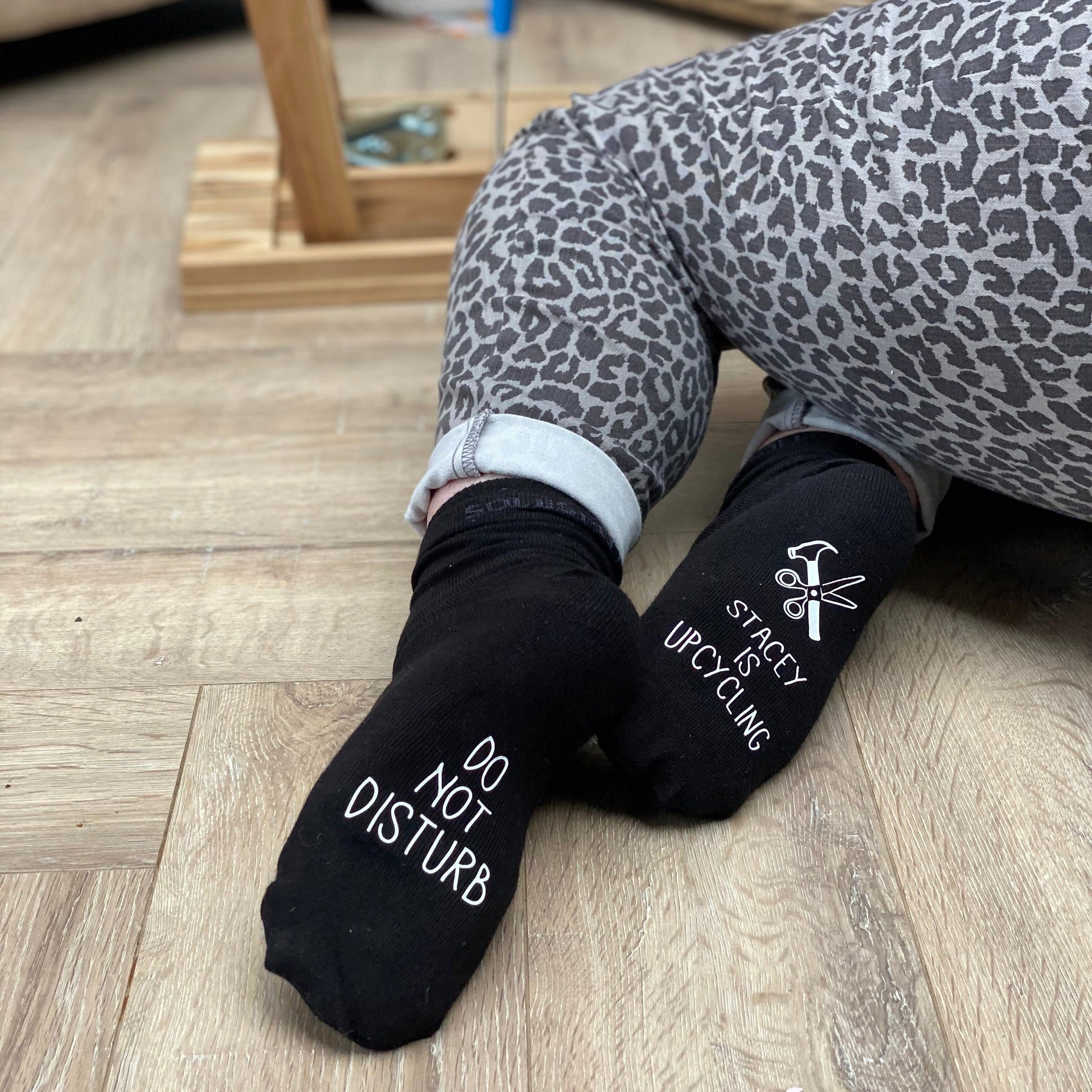 The hidden message is printed on the sole of the socks so when you are creating something exciting, everyone can see that you are not to be disturbed.