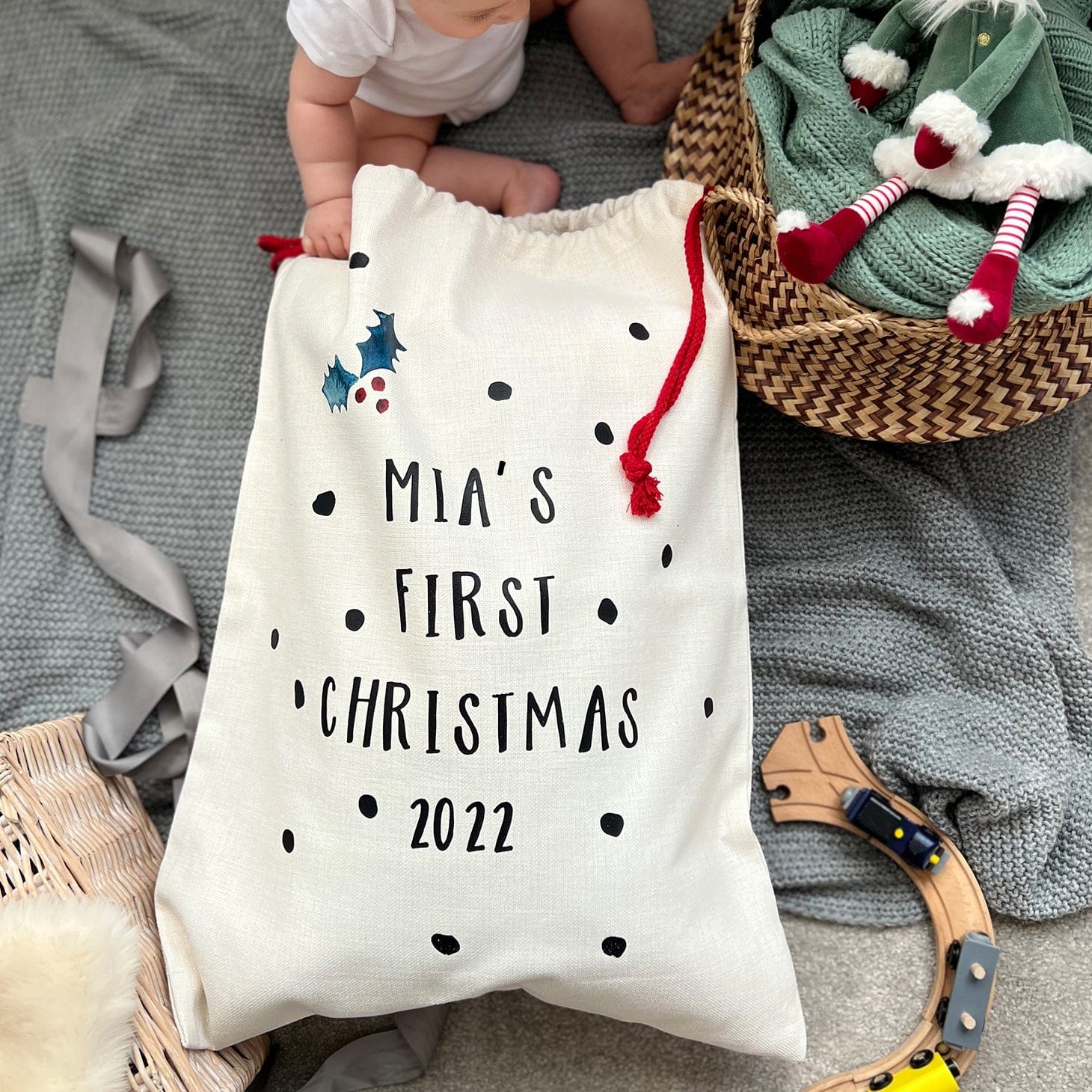 Celebrate your little one's first Christmas with this personalised Santa sack, perfect for holding all those goodies from Santa.