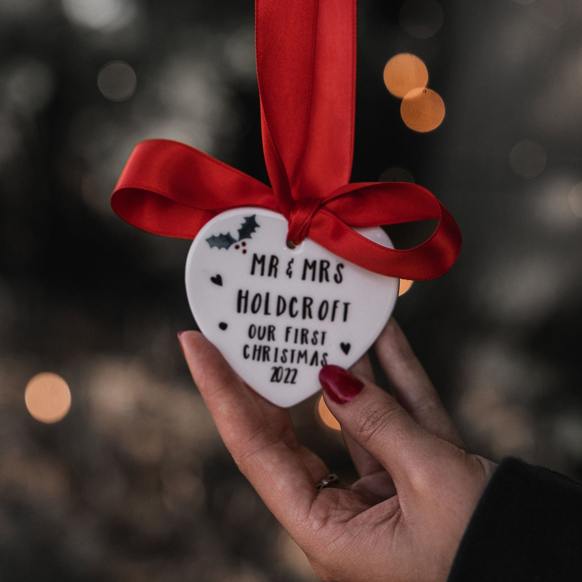 A beautiful personalised tree decoration that is the perfect first married Christmas gift for that special couple.
