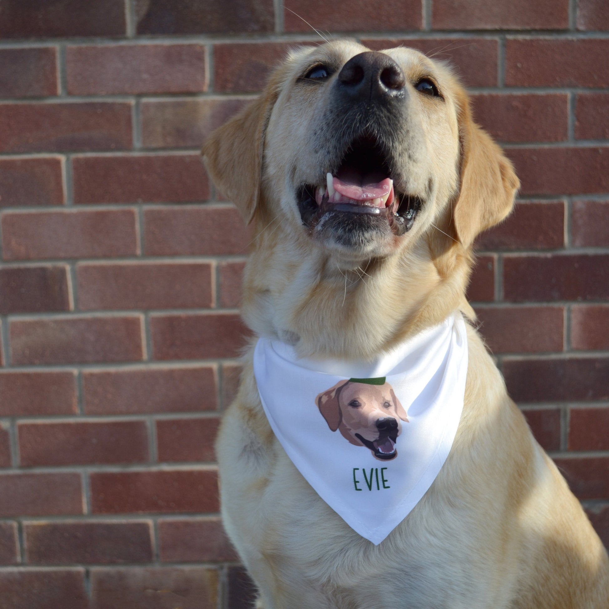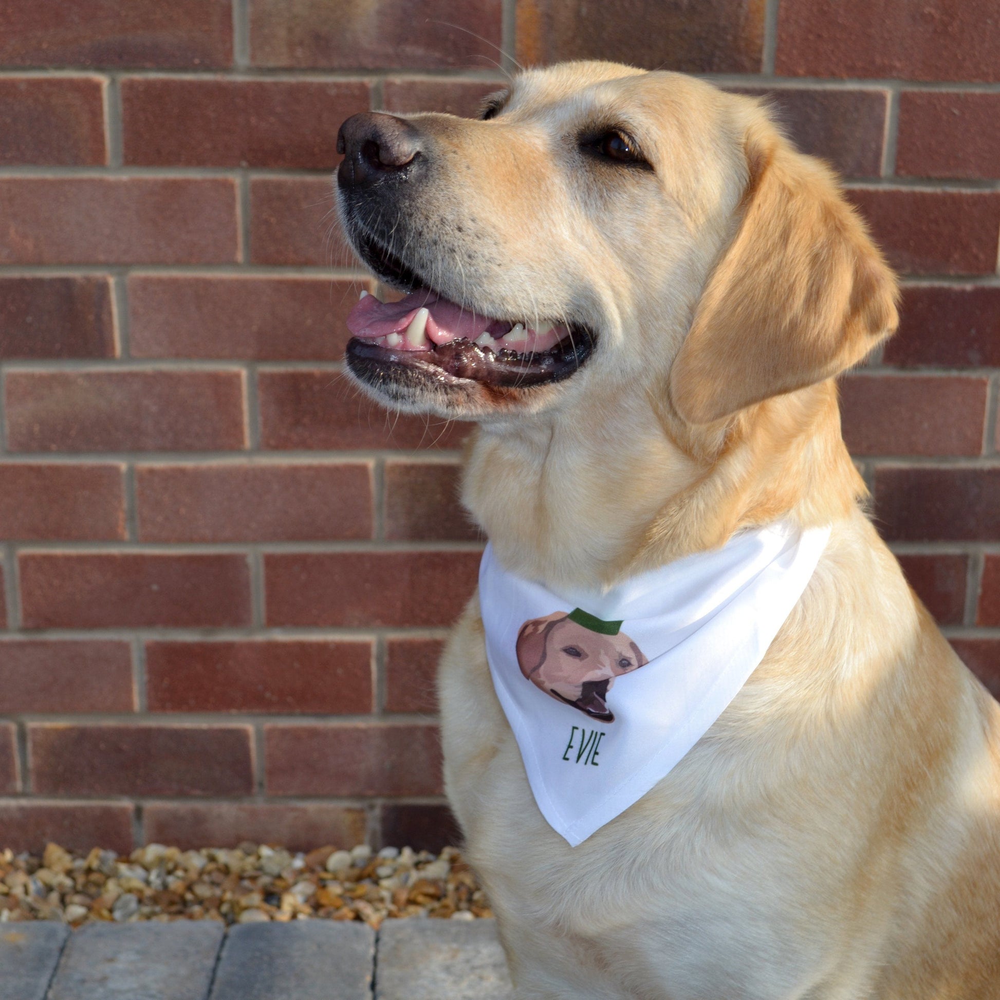 Pick the perfect pooch or kitty illustration that best represents your four legged friend. The illustration is printed onto the bandana along with their name.