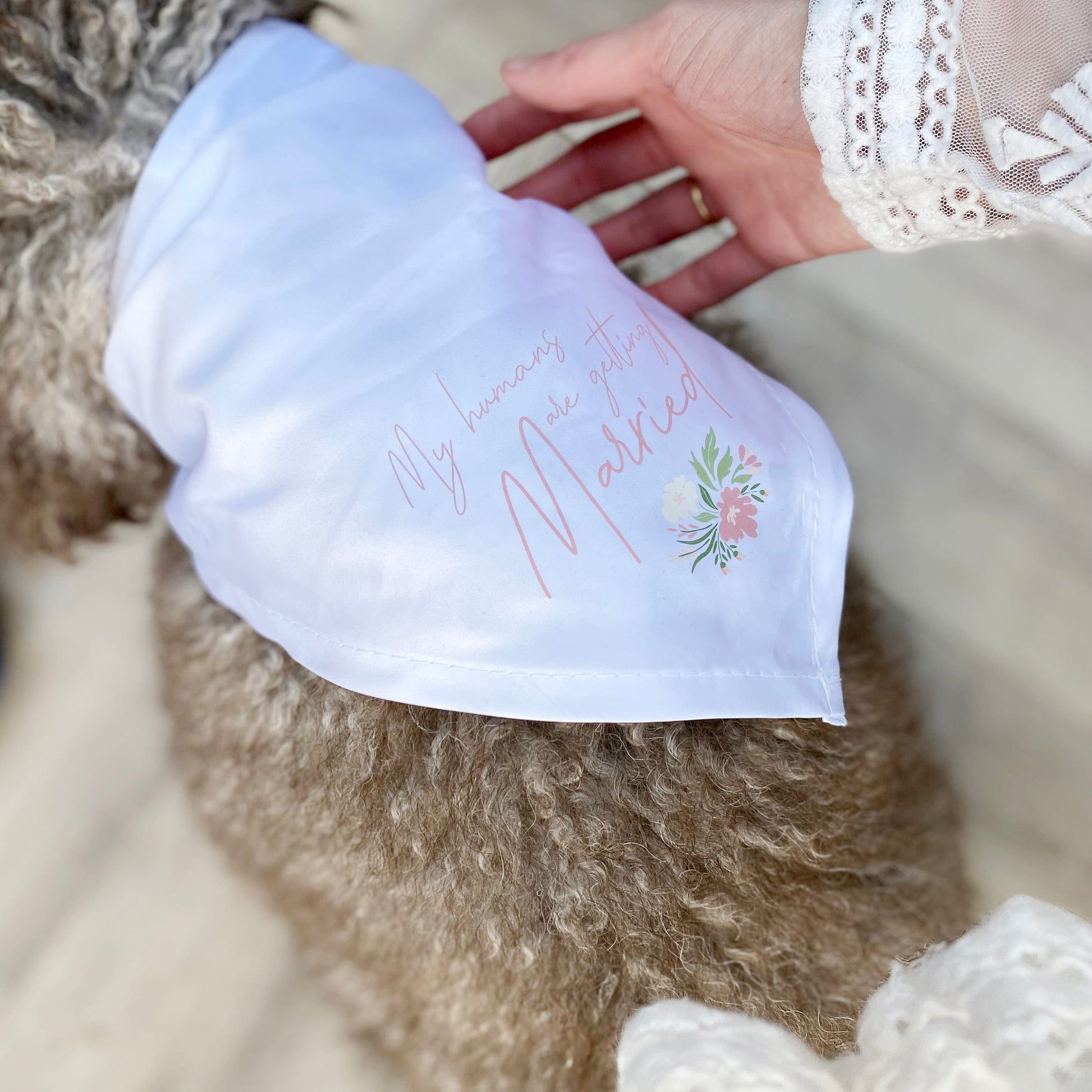 A super cute personalised bandana that is the perfect wedding outfit for a dog, what better way to get them involved in your big day.
