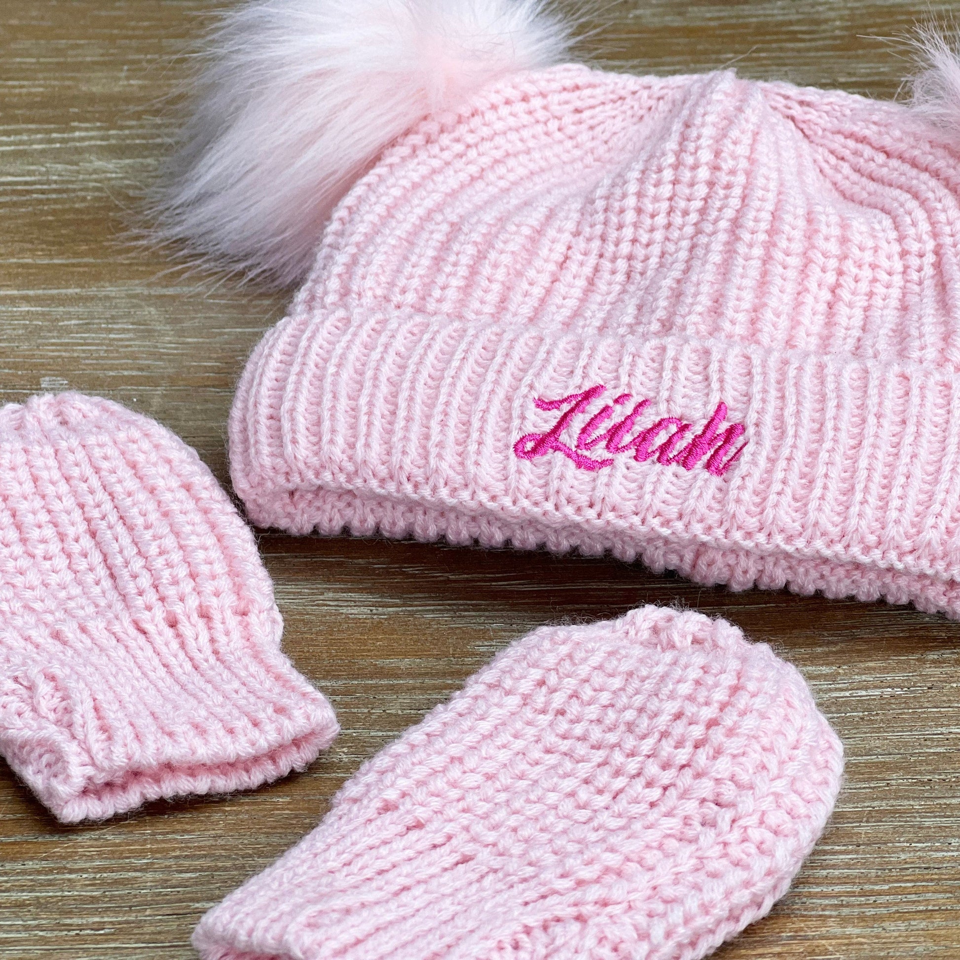 A super stylish and super adorable personalised hat and mittens set, a perfect Christmas gift for a baby.