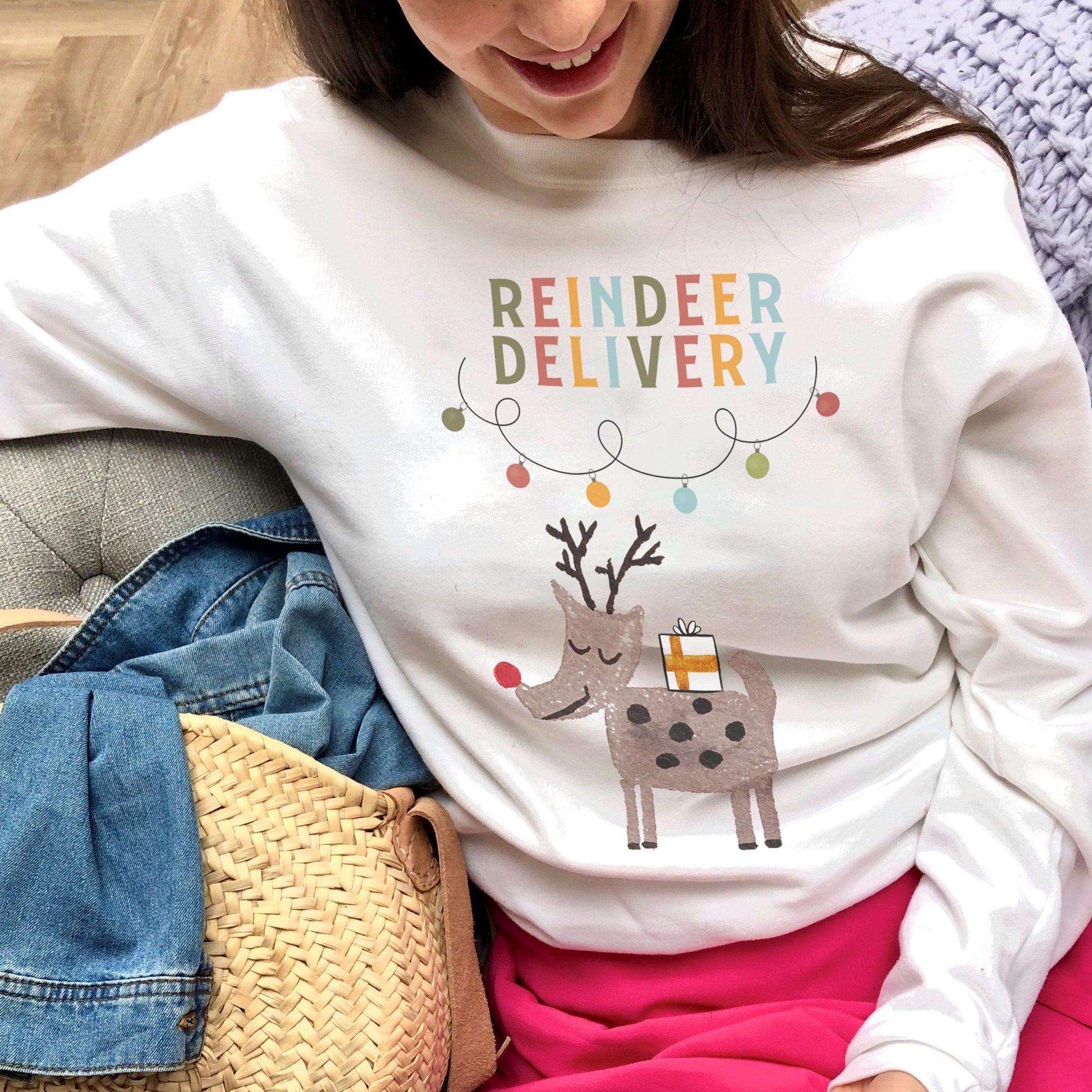 A great alternative Christmas jumper, this reindeer sweatshirt it great for Christmas outfit day at work, or just for cuddling up on the sofa on those chili winter nights.
