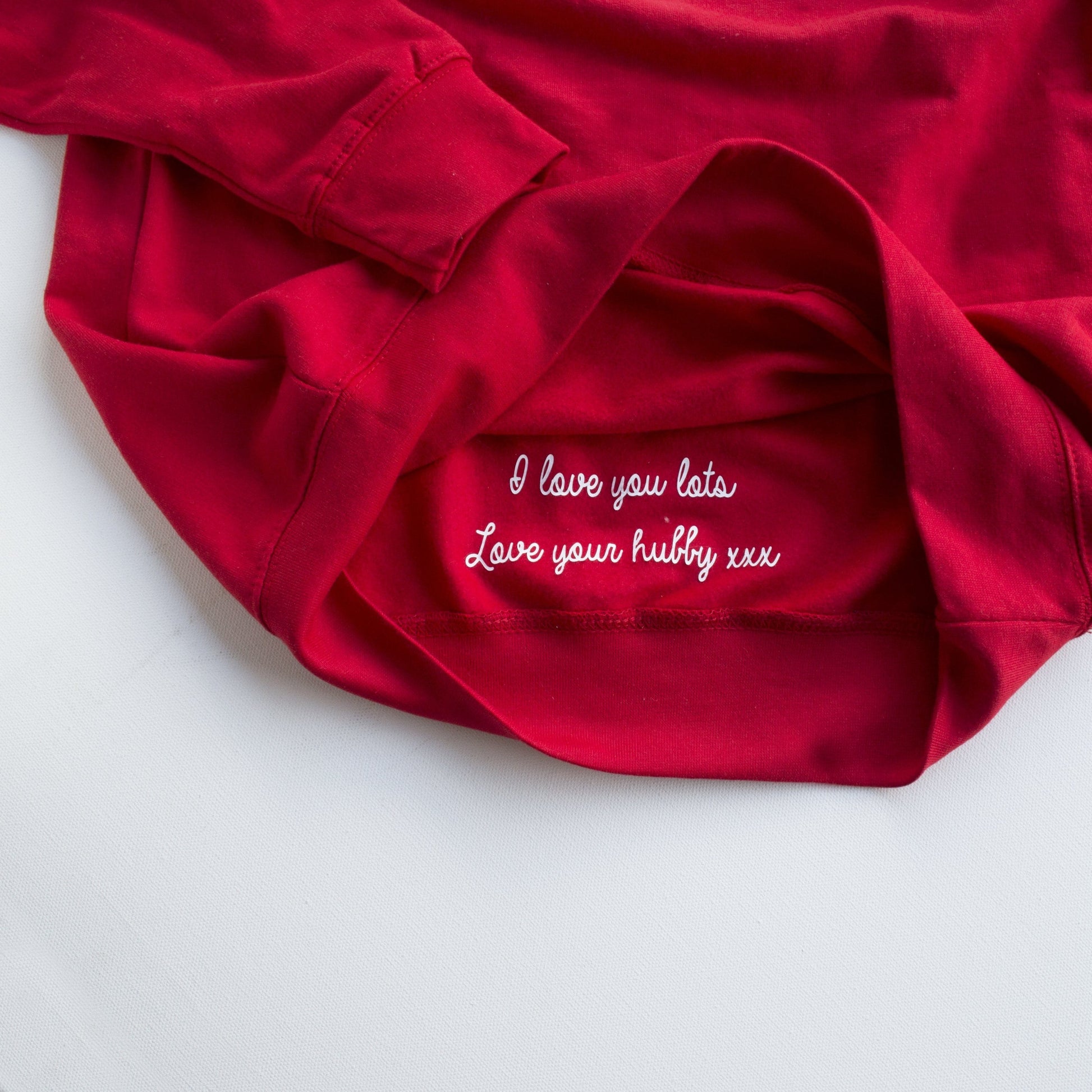 Personalise the jumper with a hidden message that will be printed on the inside at the bottom of the jumper.