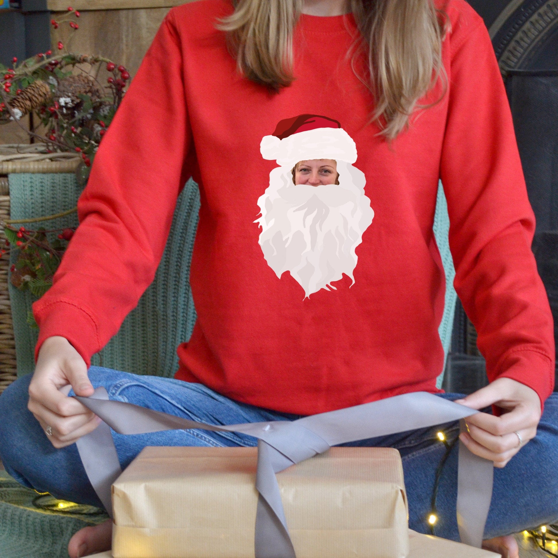 This is the ideal gift this Christmas for the ones who love to have a giggle, and wear something unique at Christmas time. The jumper features the Santa face with beard and your photo will be placed inside.
