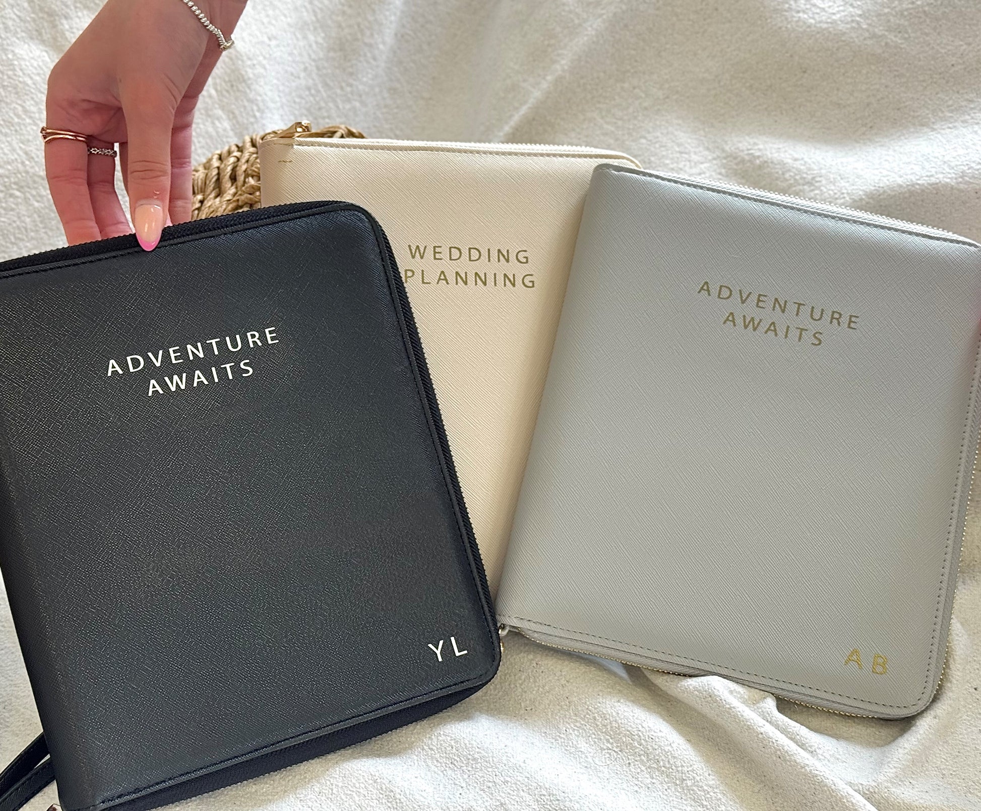 An ideal and thoughtful gift for engaged couples or brides-to-be, it’s available in soft grey, classic black, or timeless cream, each featuring refined gold or silver personalised lettering on the cover.