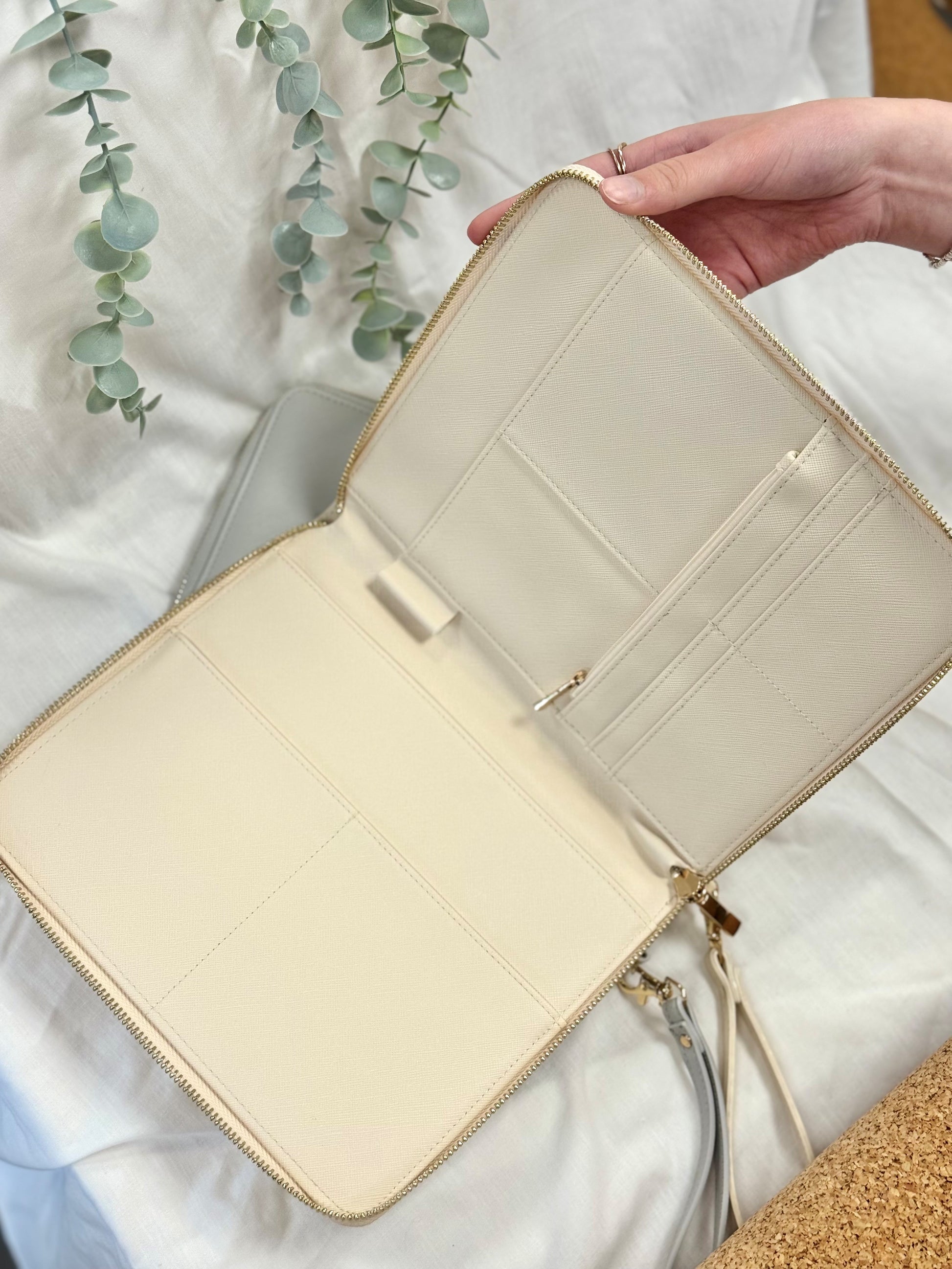 This elegant wedding organiser keeps all your planning essentials—from vendor details to vows—neatly in one stylish place. It includes dedicated sections for contracts, mood boards, receipts, and key to-do lists, secured with a sleek zip for peace of mind.