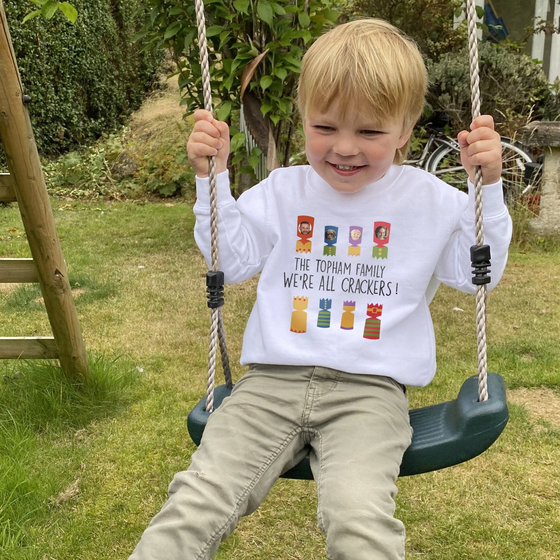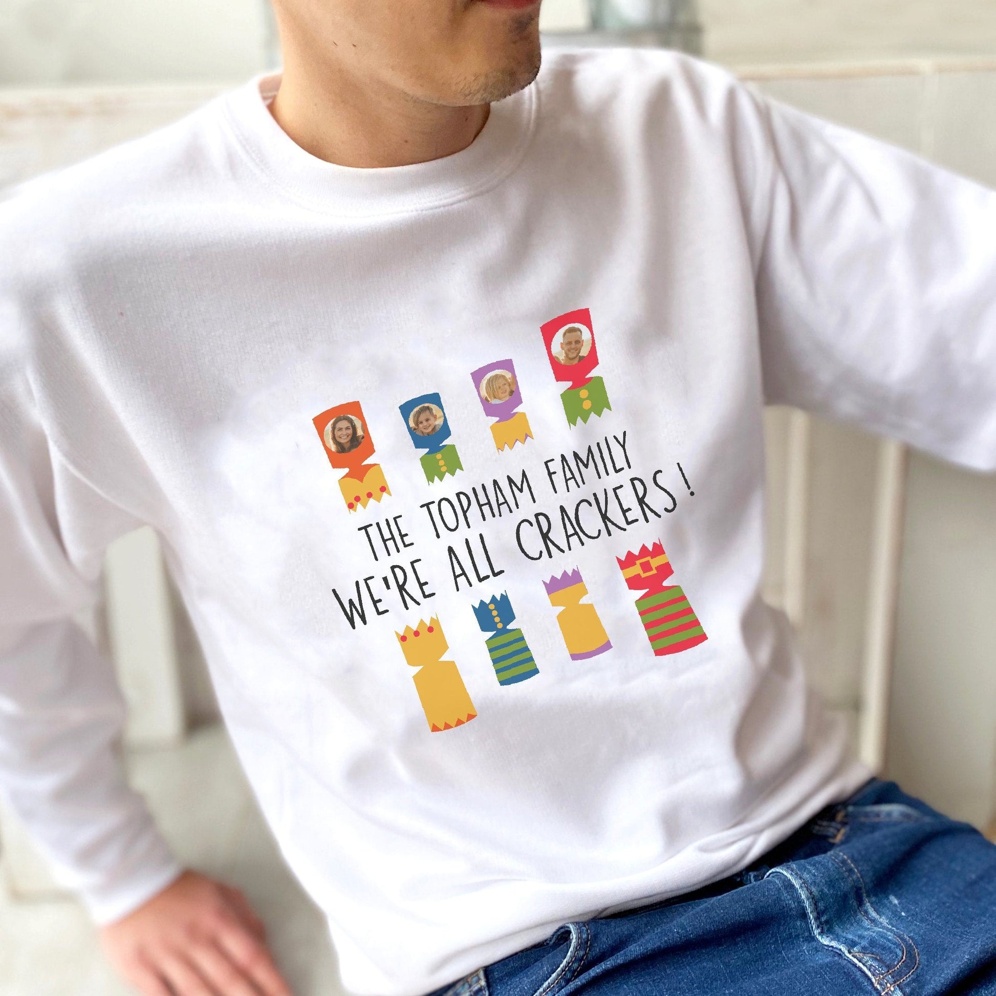 Let everyone know just how crackers your family really are this Christmas, with these super fun Christmas cracker jumpers. The jumpers feature the whole family as crackers!