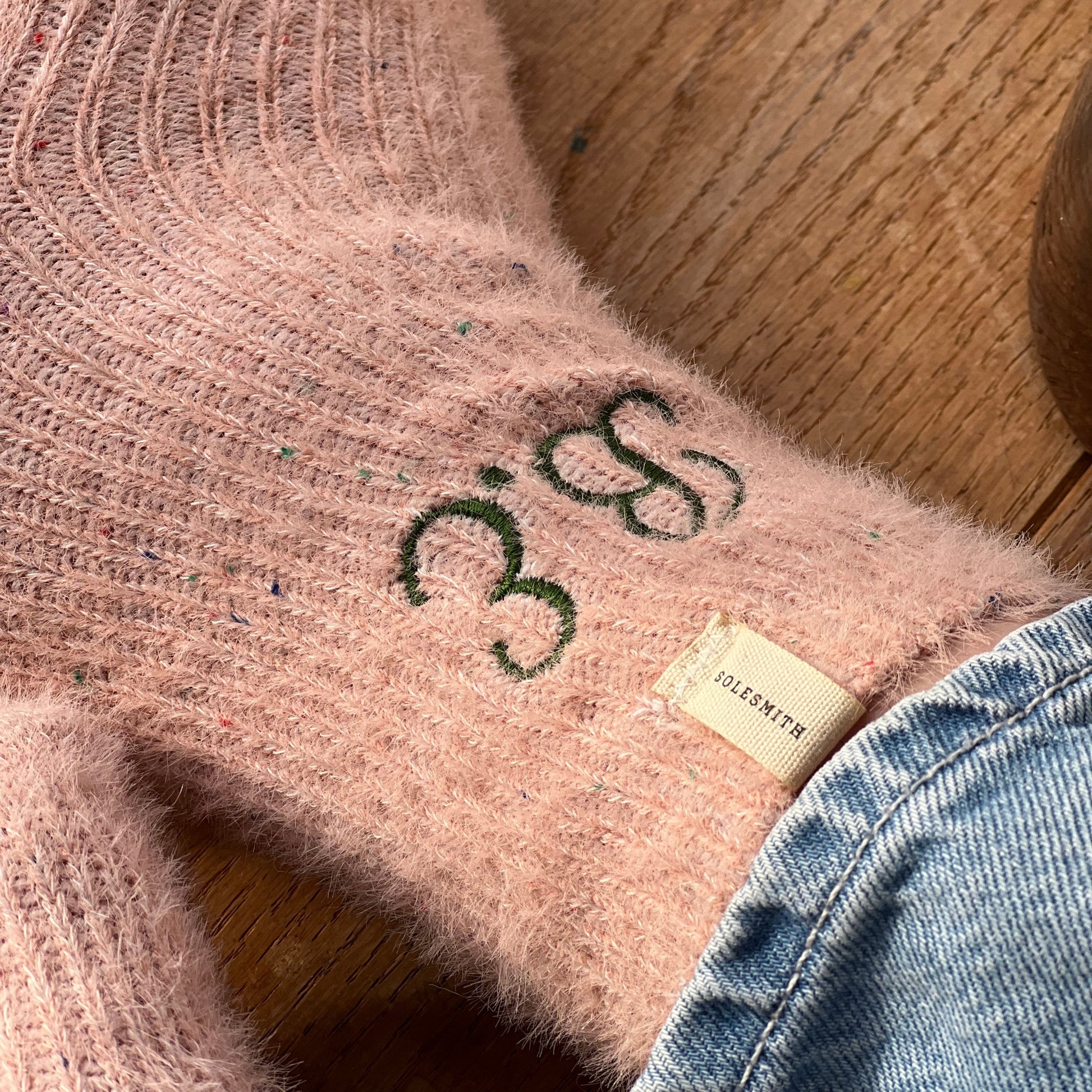 Gorgeous luxury pink socks. These beautiful socks are monogrammed with a embroidery to make a special gift. The pink socks have a subtle speckle and gentle soft touch