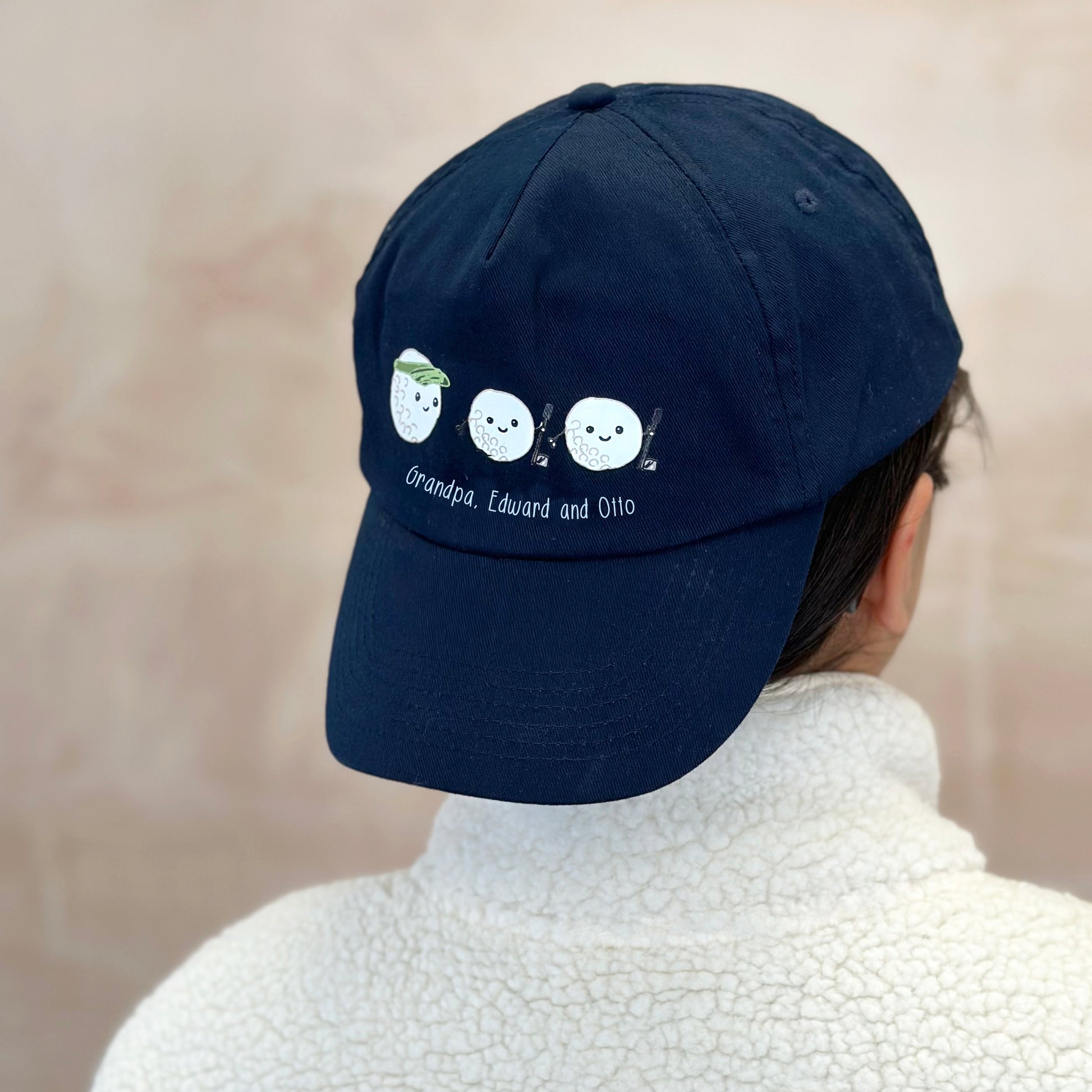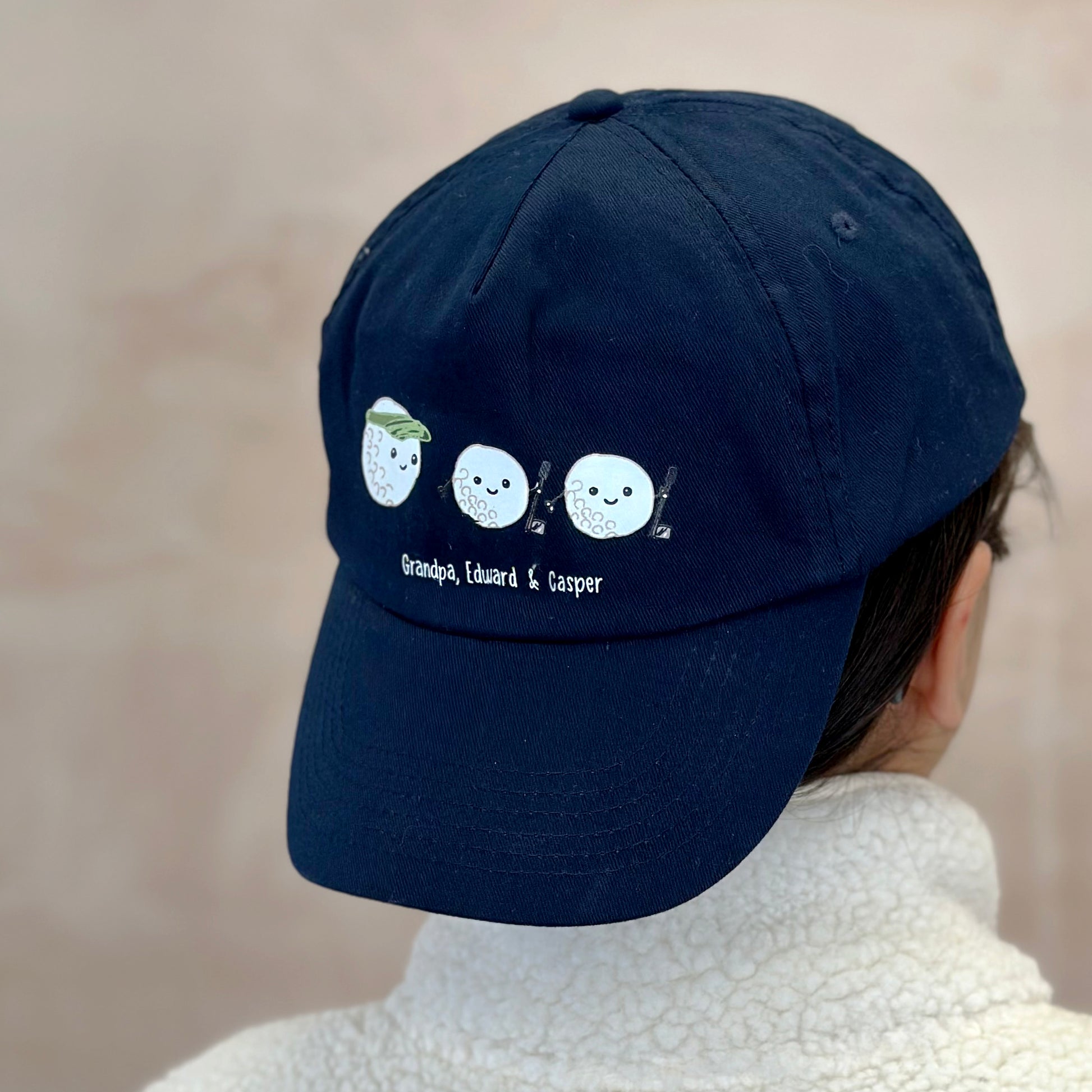A cool and stylish cotton golf cap featuring a family of golfers for Dad this father's day. The coolest cutest golf gift!